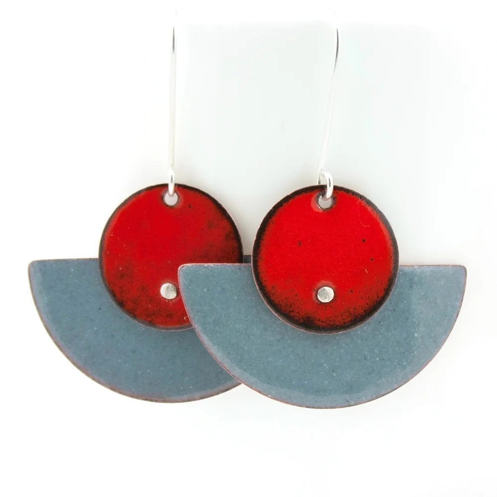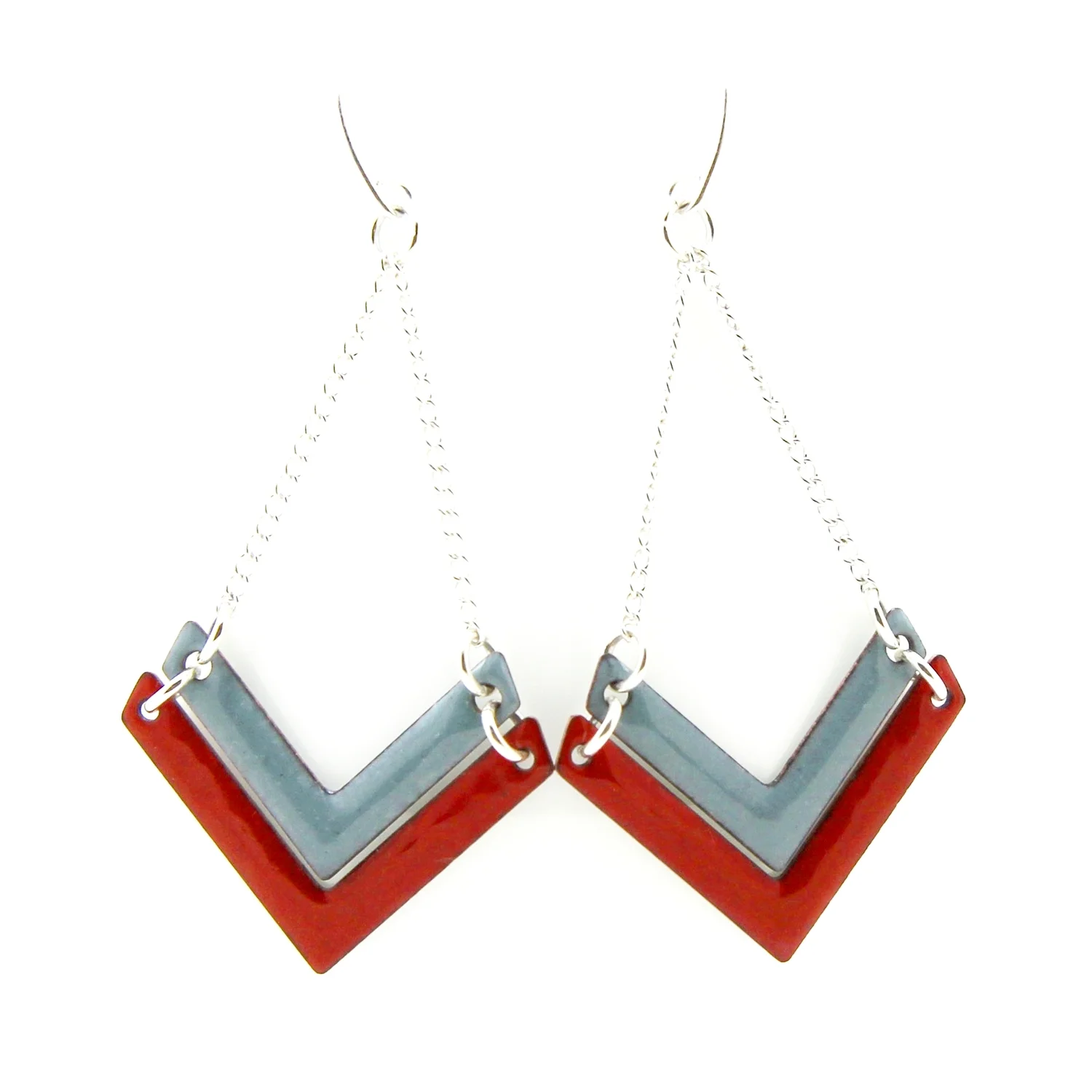 In this collection, two or more enameled pieces joined together by jump rings allowing for movement between the pieces.