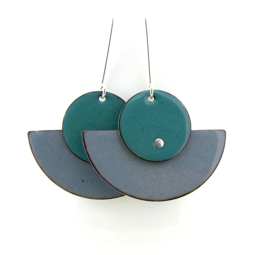 Featuring textures created by electro-etching copper from a photo or drawing and then enameling over the copper in two colors to reveal the shadow like patterns.